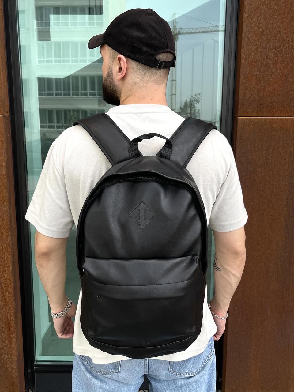 Чоловічий шкіряний рюкзак міський класичний для ноутбука чорний