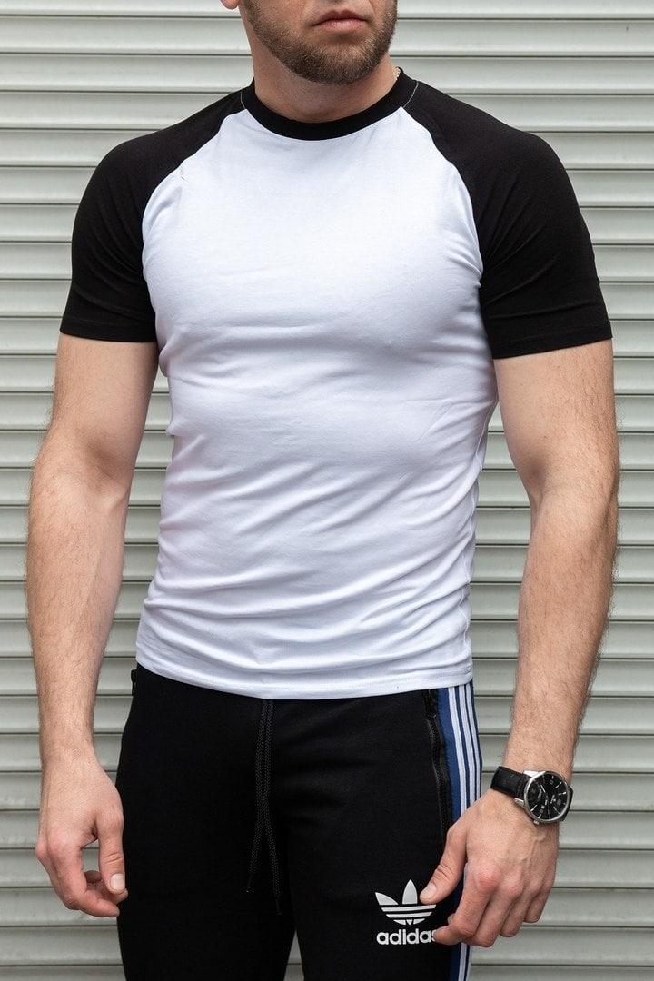 Чоловіча базова футболка біла з чорними рукавами бавовняна однотонна на літо