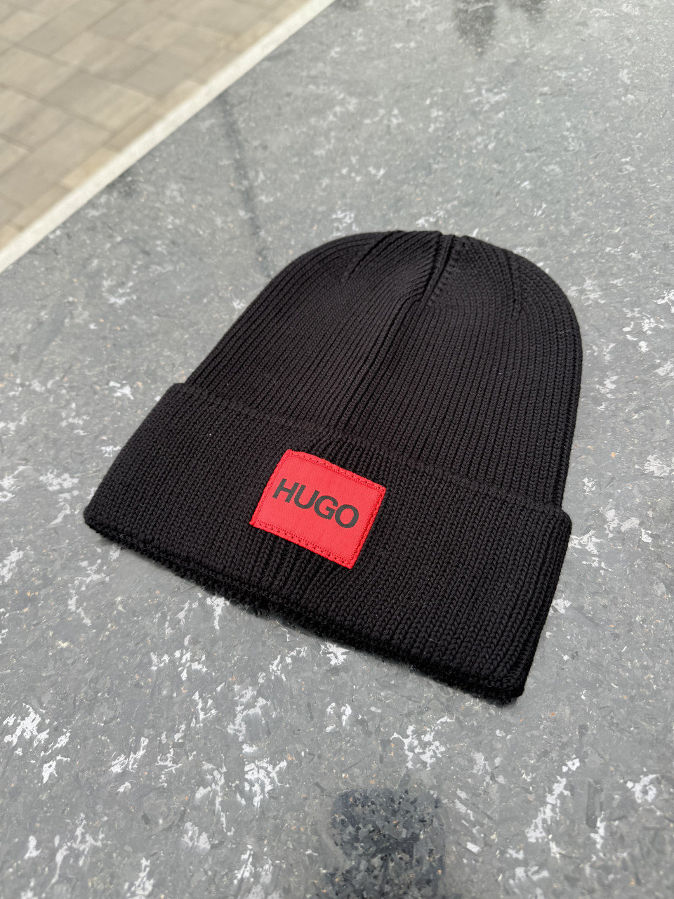 Чоловіча шапка HUGO чорна зимова тепла акрилова Хьюго Бос