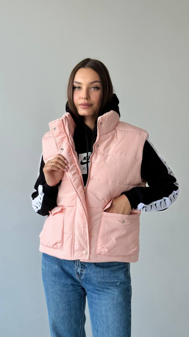 Жіноча жилетка оверсайз рожева весняна осіння Безрукавка без капюшона демісезонна