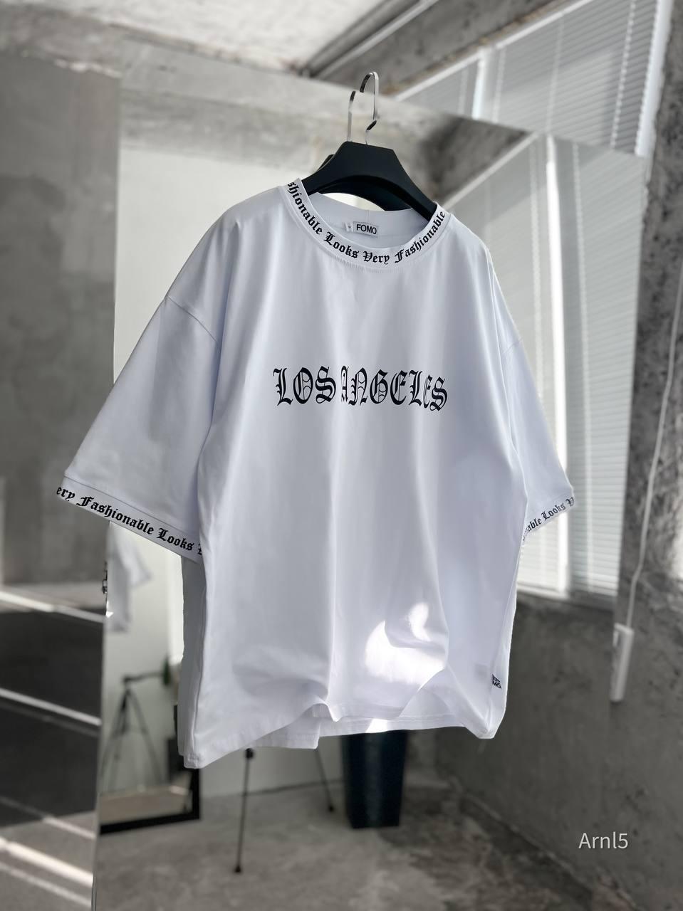 Чоловіча футболка оверсайз біла з принтом Los Angeles бавовняна повсякденна на літо