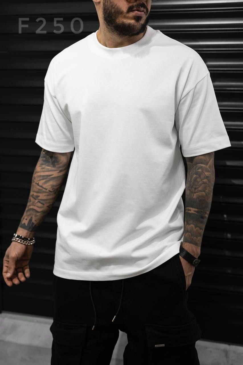 Чоловіча футболка оверсайз базова біла повсякденна з круглим вирізом на літо